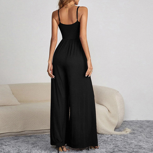 Fashion Solid Color Round Neck Button Wide-leg Jumpsuit