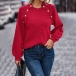 Fashion Solid Color Round Neck Buttoned Long Sleeve Knitted Sweater