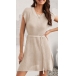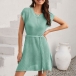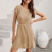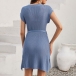 Fashion Solid Color Round Neck Cap Sleeve Self-tie Slit Knitted Dress