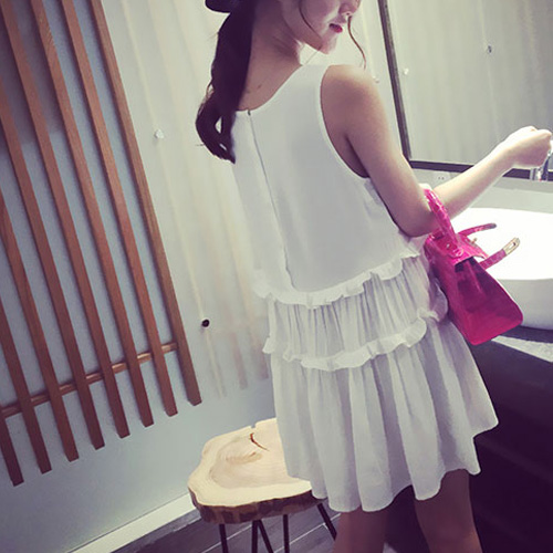 Fashion Solid Color Round Neck Flouncing Sleeveless Dress
