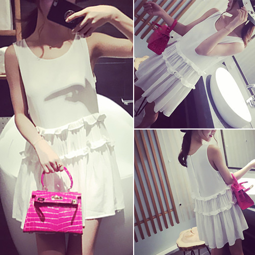 round neck and flouncing design. Just slip it on with a pair of sandals for instant chic.