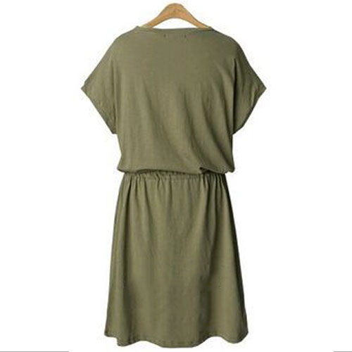 The fashion round neck, solid color and gathered waist design, it is simple but stylish,