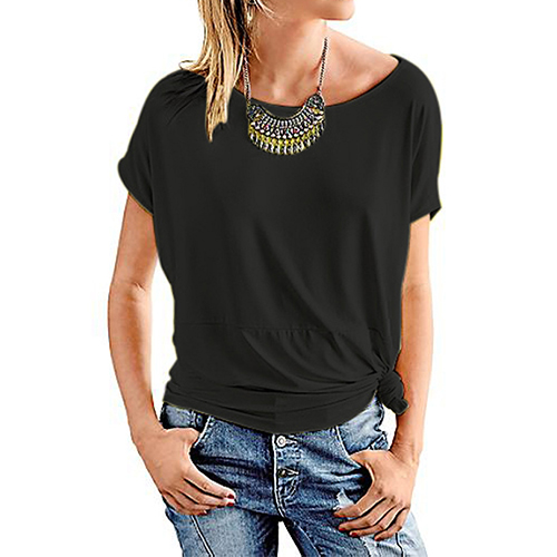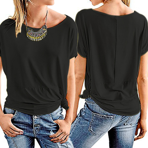 Such a fashion tops! Why not bring it to your home? Look, it features round neck, solid color and bat