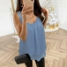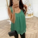 Fashion Solid Color Round Neck Lace Spliced Sling Top