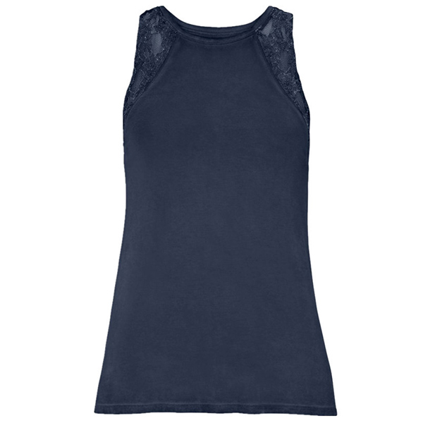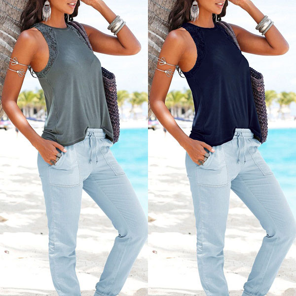 Fashion Solid Color Round Neck Lace Spliced Tank Top