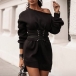 It is a good way to boost your daily style with the help of this sweatshirt dress. Solid color style,the fit silhouette and lace-up design at the waist part can better highlight your slender figure. When matching with your over-the-knee boots,you can look charming and beautiful enough!
