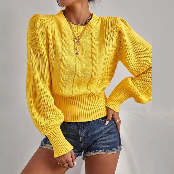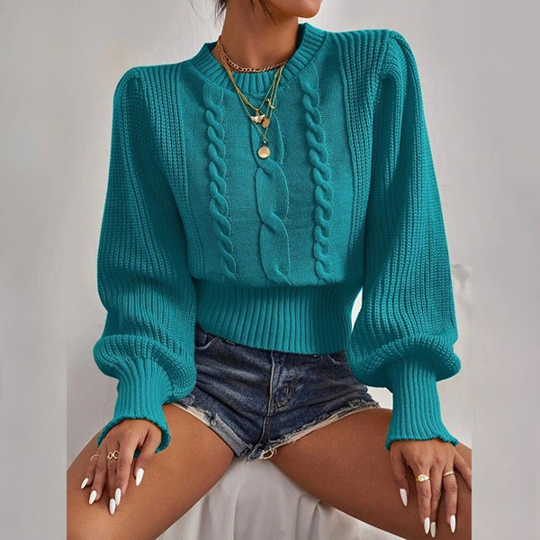 Fashion Solid Color Round Neck Lantern Long Sleeve Twist Pullover Sweater