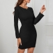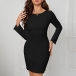 Fashion Solid Color Round Neck Long Sleeve Bodycon Dress