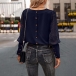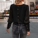 Fashion Solid Color Round Neck Long Sleeve Buttoned Knitted Shirt