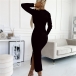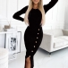 Look at this bodycon dress! Featuring a round neckline and long sleeves, this dress exudes a sense of sophistication and refinement. The button detailing on the skirt adds a stylish and eye-catching element, while the slit adds a hint of allure and visual interest. Wanna have a try?