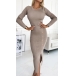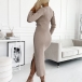Fashion Solid Color Round Neck Long Sleeve Buttoned Slit Ribbed Bodycon Dress