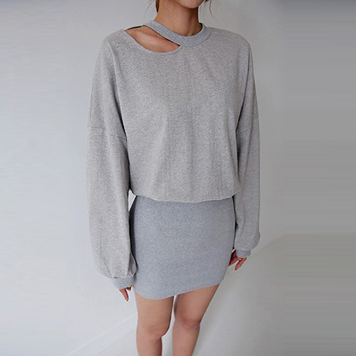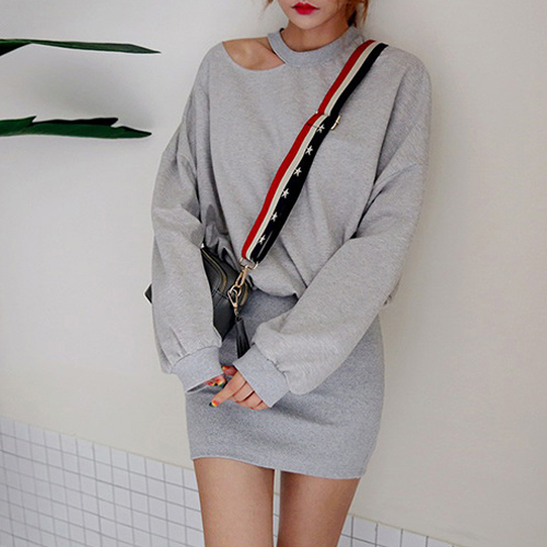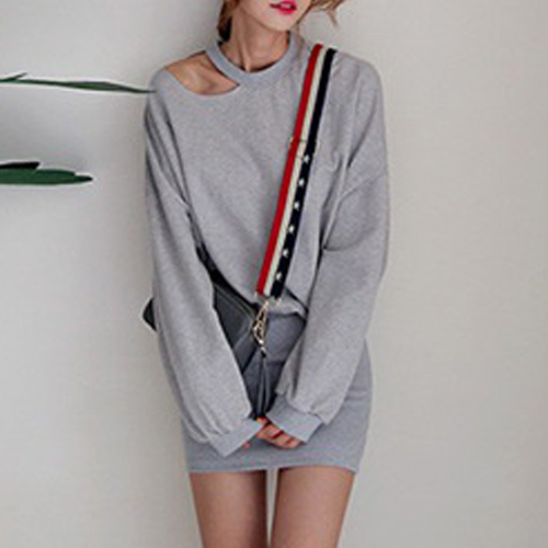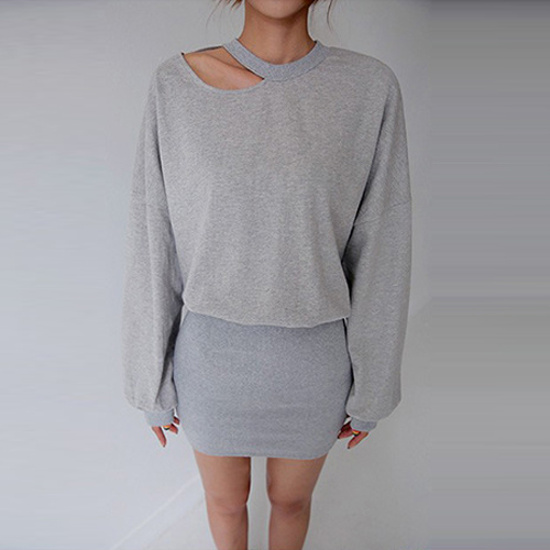 Infuse some fresh elements into your collection with this sweatshirt dress. Style in minimalist,