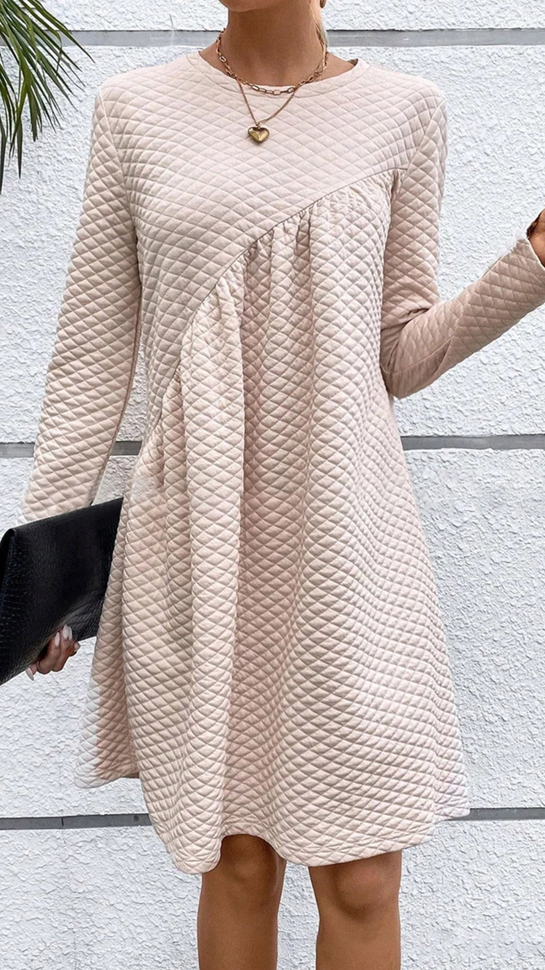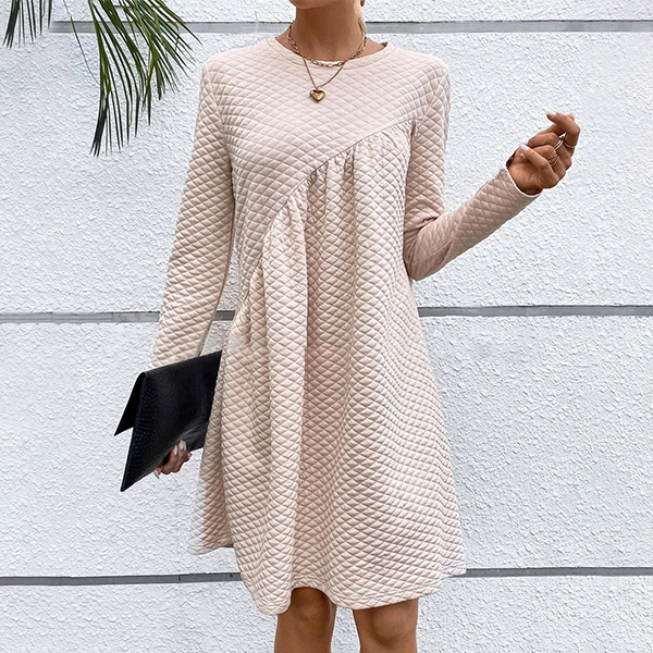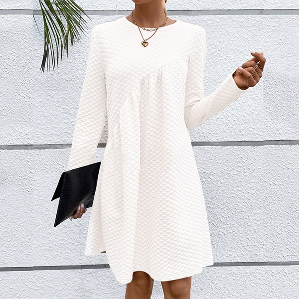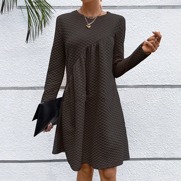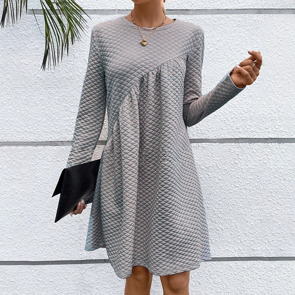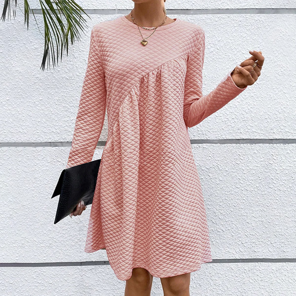 Fashion Solid Color Round Neck Long Sleeve Diamond Pattern Mini Dress