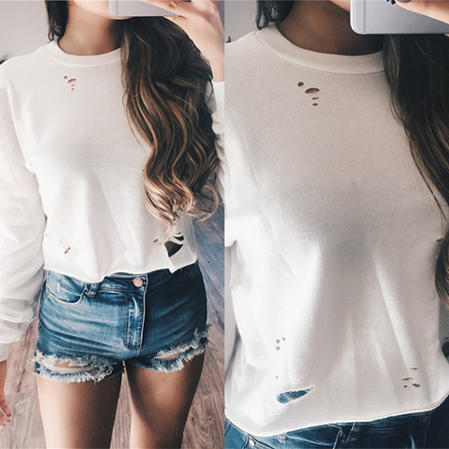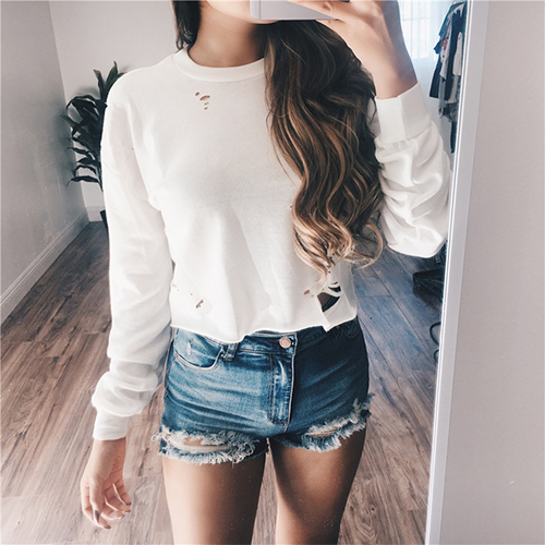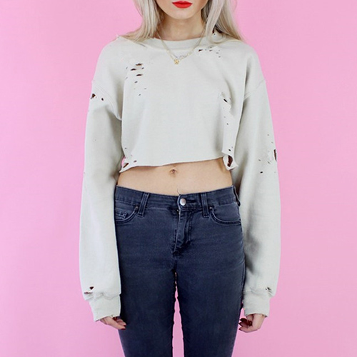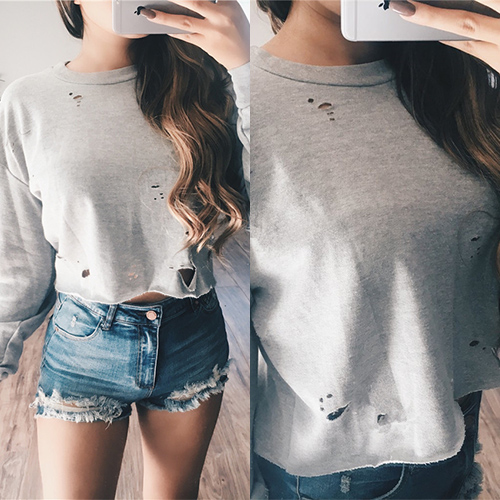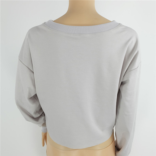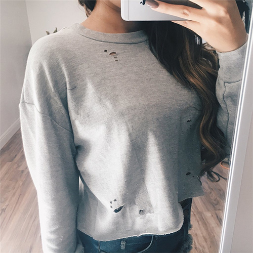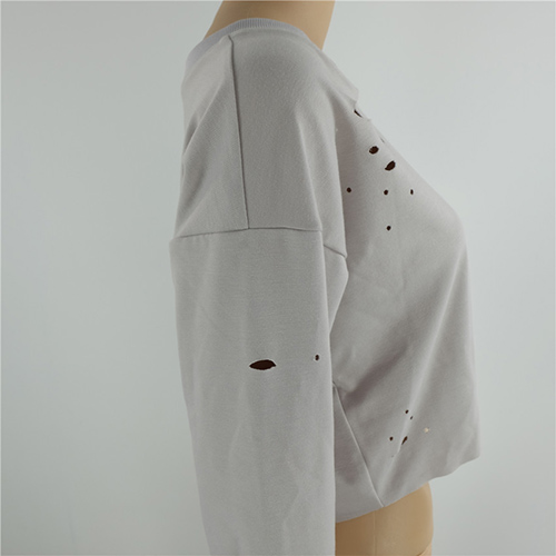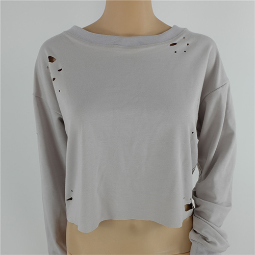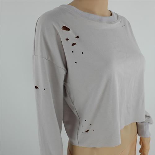 Fashion Solid Color Round Neck Long Sleeve Hollow Out Crop Tops