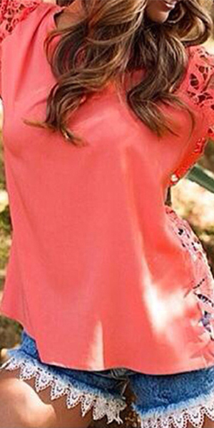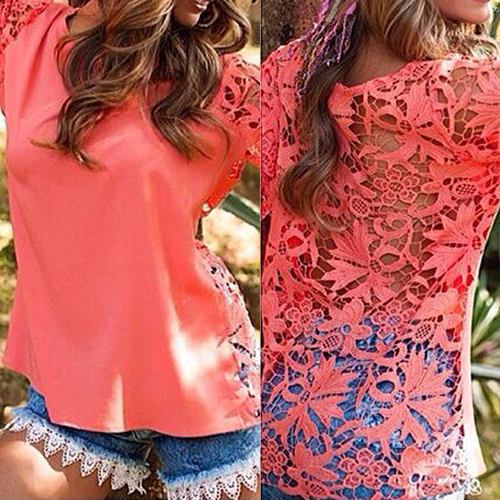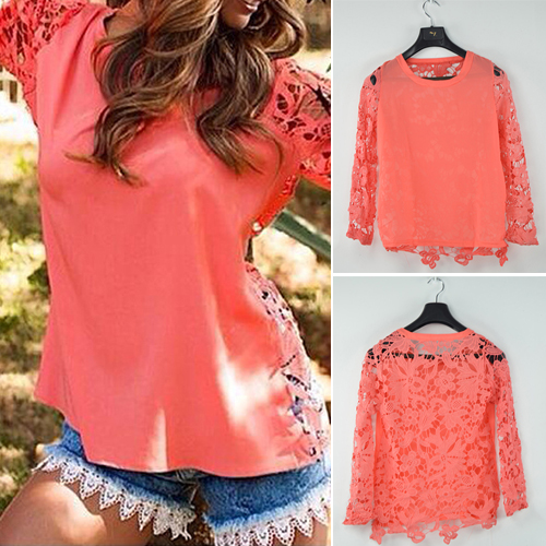 Hollow out style, with round neck, long sleeve and lace spliced design which give you a sexy and