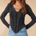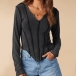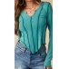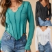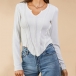 Fashion Solid Color Round Neck Long Sleeve Irregular Hemline Knitted Shirt