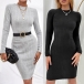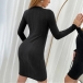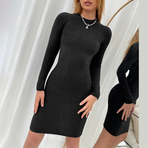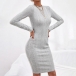 Fashion Solid Color Round Neck Long Sleeve Knitted Bodycon Dress