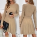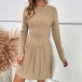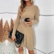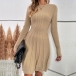 Fashion Solid Color Round Neck Long Sleeve Knitted Dress
