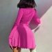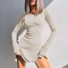 Fashion Solid Color Round Neck Long Sleeve Lace-up Mini Dress