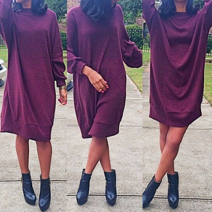 round neck and long sleeve, this dress can provide you a casual and trendy look. Try to pair