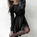 Fashion Solid Color Round Neck Long Sleeve Mini Dress