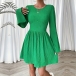 Fashion Solid Color Round Neck Long Sleeve Mini Dress