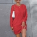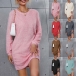 Fashion Solid Color Round Neck Long Sleeve Plush Dress
