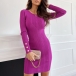 Fashion Solid Color Round Neck Long Sleeve Ribbed Dress