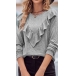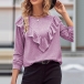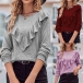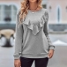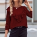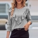 Fashion Solid Color Round Neck Long Sleeve Ruffle Shirt
