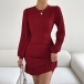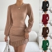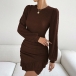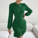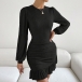 Fashion Solid Color Round Neck Long Sleeve Ruffled Hemline Mini Dress