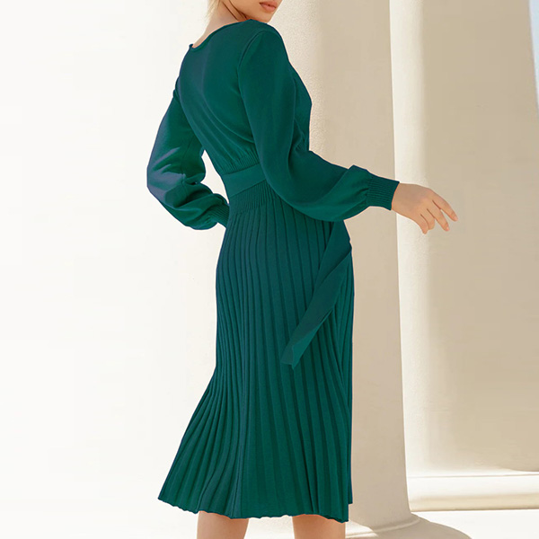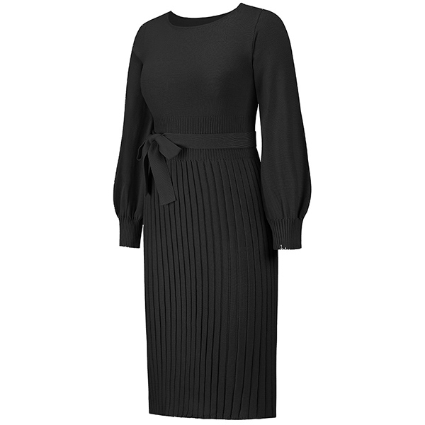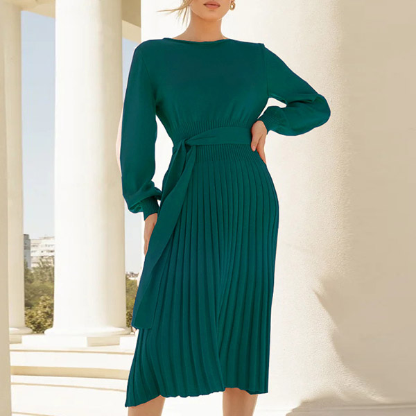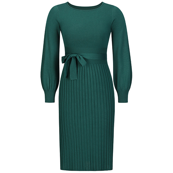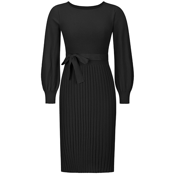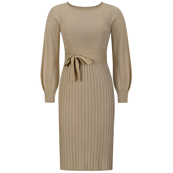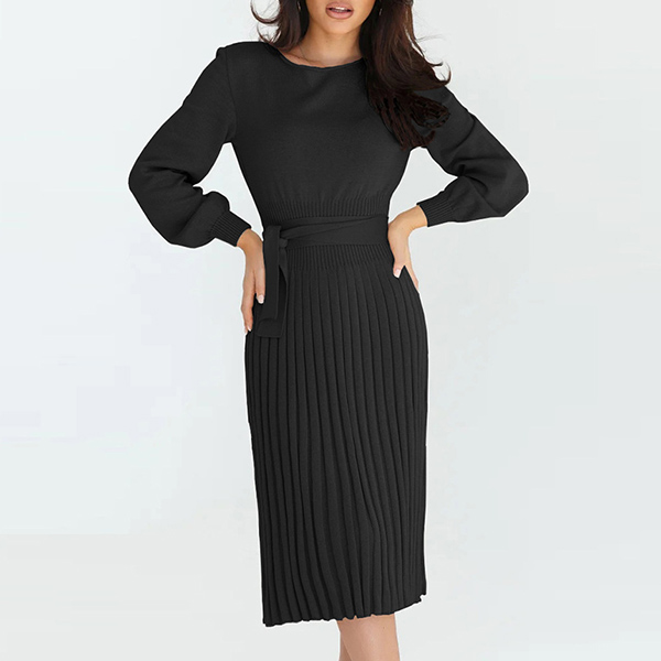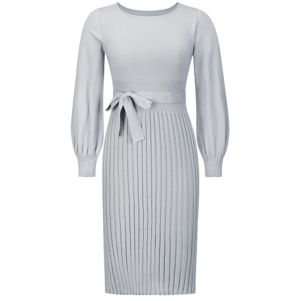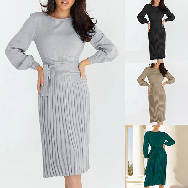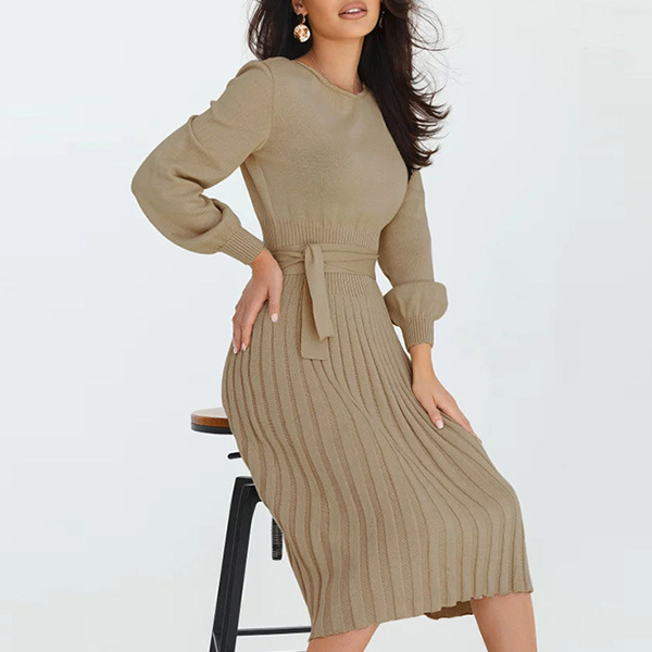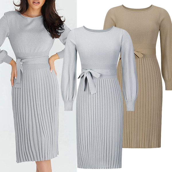 This basic knitted dress a must-have bodycon dress for any fashion-savvy woman. It features a round neck, long sleeves, and a self-tie waist that accentuates your curves.