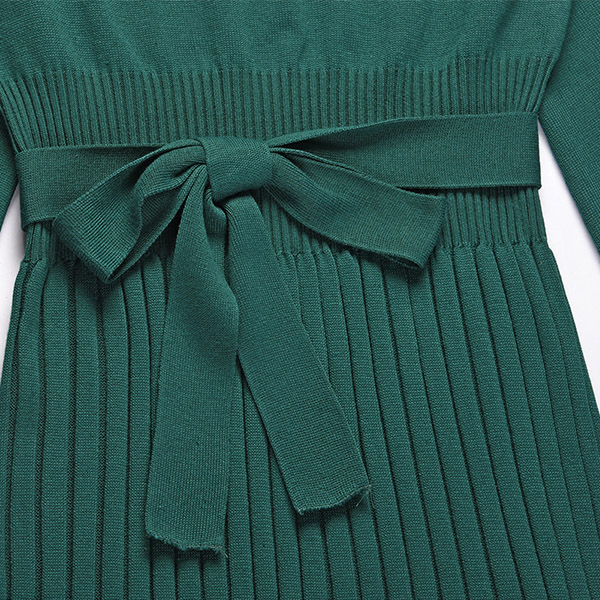 Fashion Solid Color Round Neck Long Sleeve Self-tie Self-tie Bodycon Basic Knitted Midi Dress