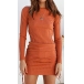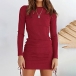 Fashion Solid Color Round Neck Long Sleeve Side Drawstring Bodycon Dress