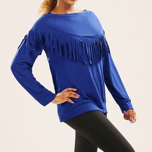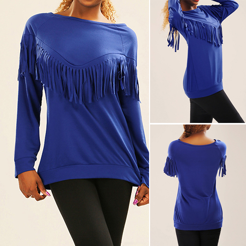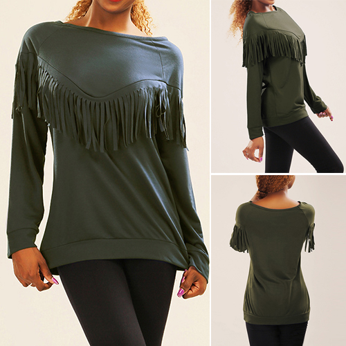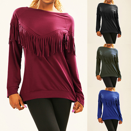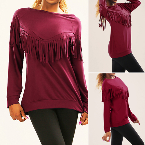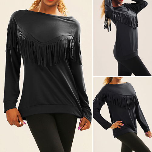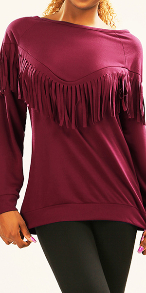 Let's make a statement, this tops can be dressed by any side. Tassel style, this piece features round neck