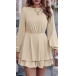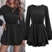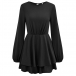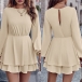 Fashion Solid Color Round Neck Long Sleeve Tiered Ruffle Romper