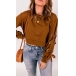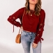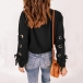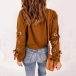 Fashion Solid Color Round Neck O-ring Lace-up Long Sleeve Shirt