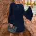 Featuring a round neck and long sleeves, this dress provides a classic and timeless look. The ruffle details along the cuff adds a feminine and playful touch, wanna have a try?