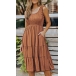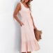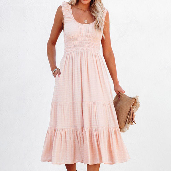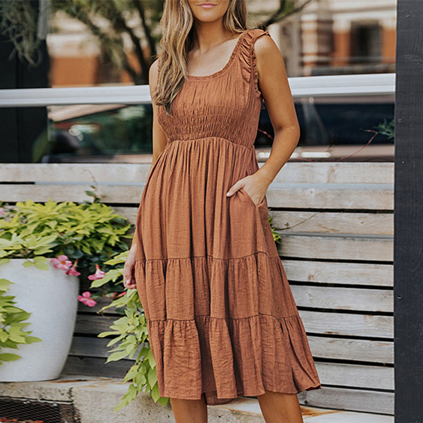 Fashion Solid Color Round Neck Ruffled Sleeveless High Waist Side Pockets Tiered Dress