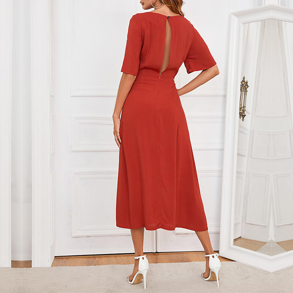 Fashion Solid Color Round Neck Short Sleeve Backless Dress