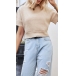 Fashion Solid Color Round Neck Short Sleeve Crop Sweater