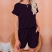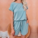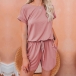 Fashion Solid Color Round Neck Short Sleeve Drawstring Romper