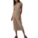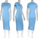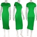 Fashion Solid Color Round Neck Short Sleeve Midi Dress
