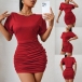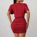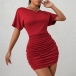 Fashion Solid Color Round Neck Short Sleeve Ruched Bodycon Dress