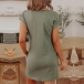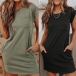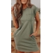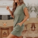 Fashion Solid Color Round Neck Short Sleeve Side Pockets Shirt Dress
