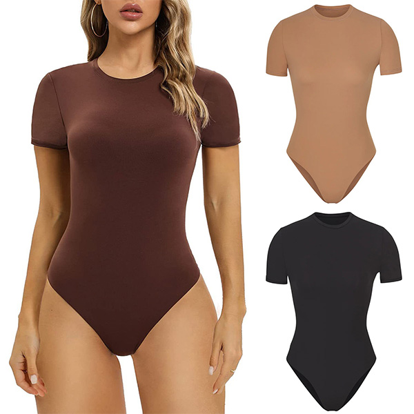 Fashion Solid Color Round Neck Short Sleeve Slim Fit Bodysuit