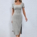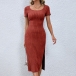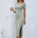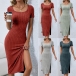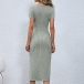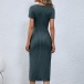 Fashion Solid Color Round Neck Short Sleeve Slit Ribbed Dress