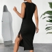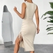 Look at this tank dress! The round neckline has a classic, refined look, while the sleeve details add a contemporary touch. The slit detail not only adds a touch of allure, but also allows for ease of movement and breathability. It's a thoughtful design element that makes this dress exceptionally wearable.