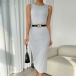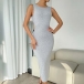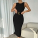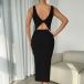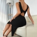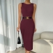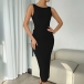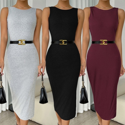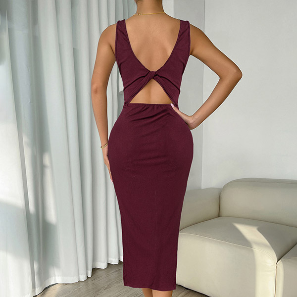 Fashion Solid Color Round Neck Sleeveless Backless Bodycon Dress