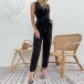 With its sleeveless design, this jumpsuit is perfect for warmer weather or can be layered with a jacket or cardigan for cooler days. The backless feature adds a touch of allure and creates an eye-catching detail. Wanna have a try?
