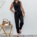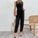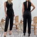 Fashion Solid Color Round Neck Sleeveless Backless Self-tie Jumpsuit